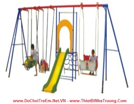Gồm liên hoàn xích đu cầu trượt, 2 khối xích đu với dạng ghế ngồi khác nhau. Tạo sự thích thú với trẻ nhỏ.